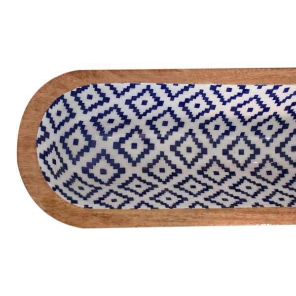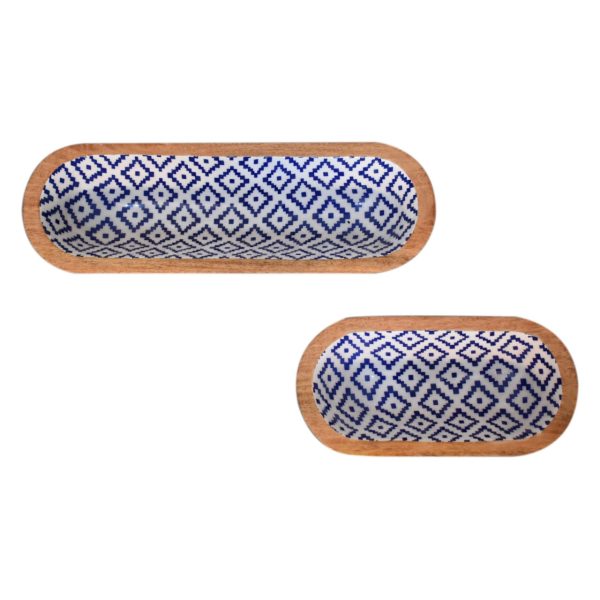 Beautifully crafted from solid Mango Wood, this beautiful oblong bowl set is bound to wow your guests. With natural Mango Wood grain detailing externally and internal lacquered black and white aztec patternings, the style and contrast of the design and wood finish really allow the natural beauty of materials to shine.This product is handcrafted individually and as every piece is unique please do expect variations in finish, texture, size and should not be considered as a defect.