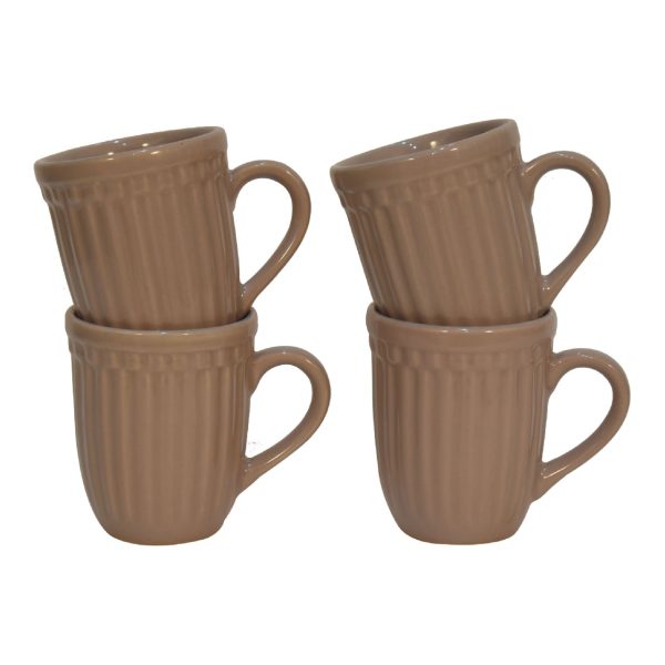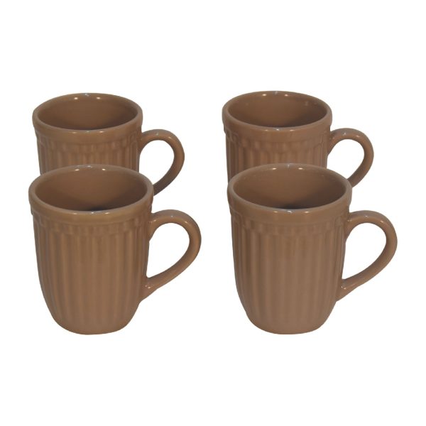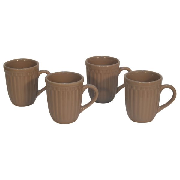 With a contemporary ribbed design, this mug set of 4 is offered in a beige colour and also available in a range of soft colours. Featuring a glossy finish, and a sturdy handle, it is the perfect choice for enjoying your favourite hot drink.