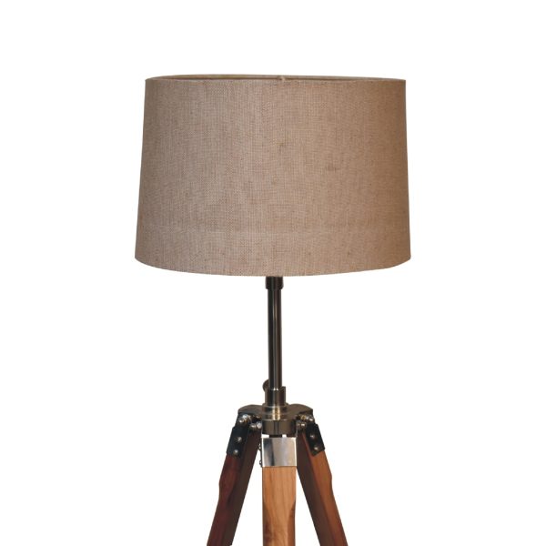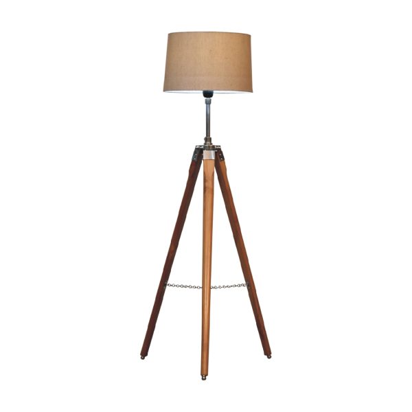 This contemporary floor lamp features a fixed wooden tripod design base in teak wood as well as a neutral lampshade which will provide stability as well as a natural colourway and soft contrast. It is bound to inject both a modern and rustic touch to your home décor.