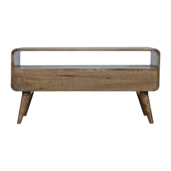 Our solid timber media unit is expertly constructed from 100% solid mango wood in a grey washed finish. This modern design offers clean, curved edges to suit most homes. Some features include 2 drawers that come with a shiny knob, a large open slot to place any books, photo frames, ornaments, and 4 Scandinavian style legs.