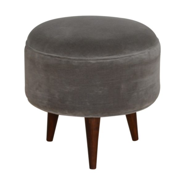 This beautiful footstool provides the perfect contrast between the beautiful upholstered grey cotton velvet and wooden legs constructed from 100% solid mango wood in walnut finish, made to compliment the classic Nordic style. Making a perfect footrest, handbag stand, or accent piece for the corner of the bedroom, hallway, or living space, this little stool will add a pop of colour to any room and serve handy all over the home.