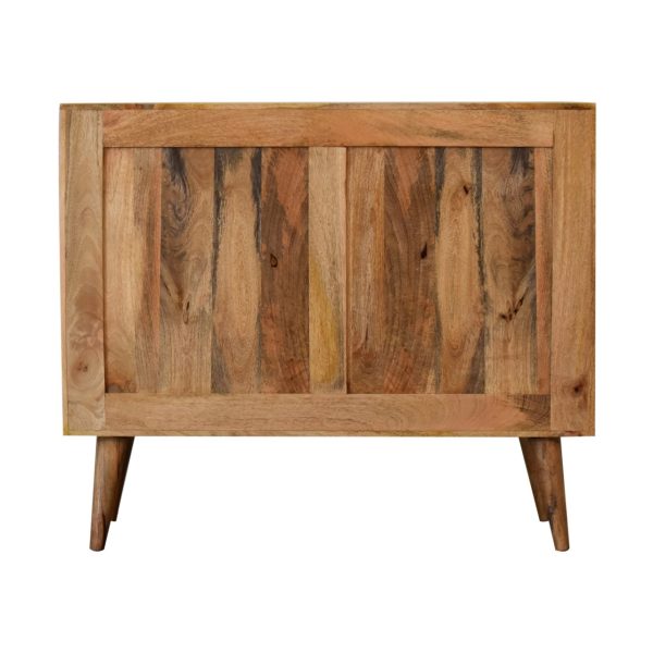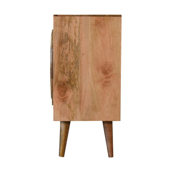 The Larissa cabinet will stand out in your interior thanks to its understated look and subtle originality. The beautiful grain pattern and rattan design do not make this sideboard any less functional. In fact, it has two doors and drawers inside which offer plenty of storage space. It makes it simple to store your tableware or your papers whether you decide to keep it in the dining room or the living room.