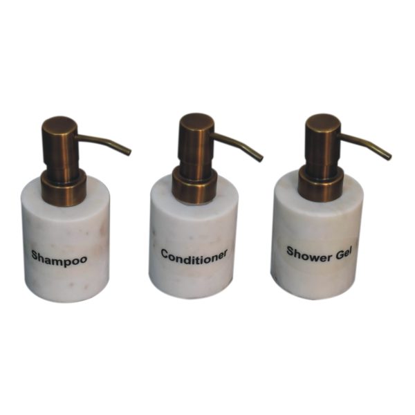 Featuring 3 bottles with convenient pump dispensers, use this set in your bathroom. The perfect way to have your favourite products in hands reach without compromising on style