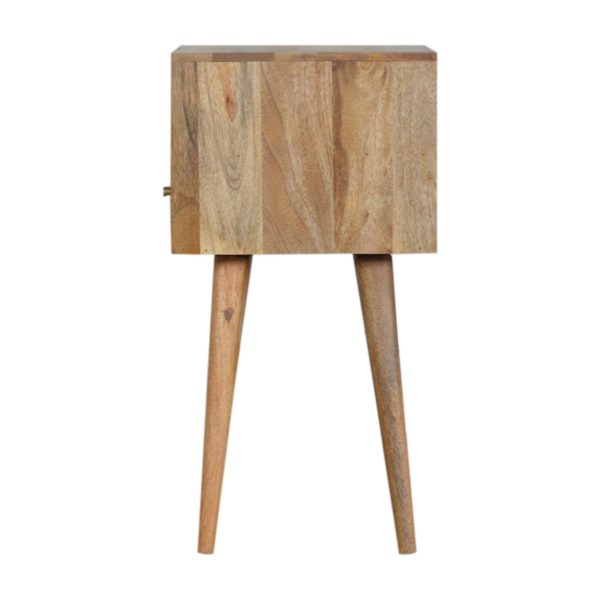 This beautifully designed bedside is constructed from 100% solid mango wood and has a oak-ish finish. Useful storage space is available with 1 drawer with a cement finish with a wood chip design, 1 shelf and a decent sized table top to place any ornaments. Other features include 4 Nordic wood style legs. This is a modern style which will suit most homes.