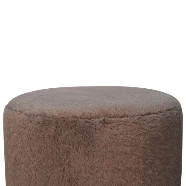 This lovely footstool has been upholstered in a beautiful mocha faux fur and is a convenient piece perfect for the living room or bedroom, it has a comfortable round seat and can be paired with different styles and finishes of furniture in the home.