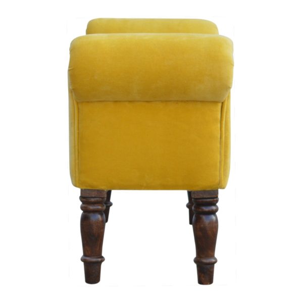 This lovely bench is ideal for a hallway, end of the bed, or simply any living area in your home which is also ideal for extra seating. In an amazing mustard yellow cotton velvet featuring turned legs constructed from 100% solid mango wood in a walnut finish. This bench will add a pop of colour to any room and serve handy all over the home, available in many different colours.