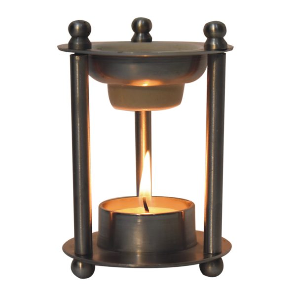 This lush Brass burner in Nickle finish will complement any room and allow you to enjoy hours of burning fragrances. Perfect for use in the living room or bedroom, and makes an ideal gift for friends and family. The set includes a burner, aroma oil in jasmine, cinnamon and citronella and unscented tealight candles.