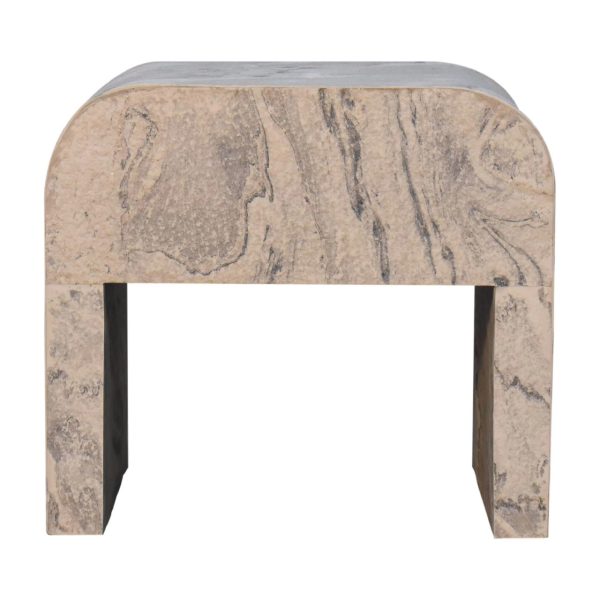 Introducing the “Nouveau” Bedside, a symbol of refined luxury. Crafted from Solid Mango wood with an oak-ish finish inside the drawer, the body features a laminated marble effect stone veneer. Adorned with a shiny brass round knob, this bedside exudes opulence and sophistication, making it a timeless addition to any upscale bedroom. Experience the epitome of posh living with the “Nouveau” Bedside from this collection.