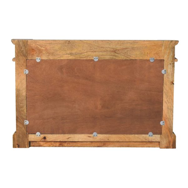 Embrace the essence of Peking art with the Oriental Elegance Wine Cabinet. Crafted from solid mango wood, this table features a hand-painted black base adorned with hand sketched oriental characters, each telling a unique story. The design is highlighted by a plinth bottom, adding an elegant flow. A shiny brass knob complements the piece, ensuring functionality meets style. This bedside table is a perfect blend of durability, artistic charm, and Chinese cultural influence.