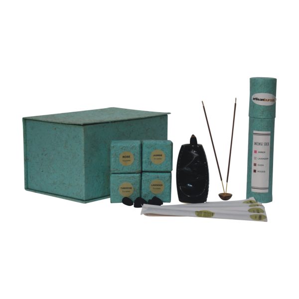 The backflow fountain burner set is exquisitely crafted and features a unique oval design, ideal as a gift for friends and family. The set includes a backflow burner, incense holder, and fragrant backflow cones and incense sticks.