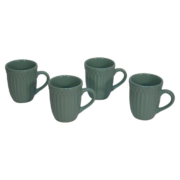 With a contemporary ribbed design, this mug set of 4 is offered in a sea green colour and also available in a range of soft colours. Featuring a glossy finish, and a sturdy handle, it is the perfect choice for enjoying your favourite hot drink.
