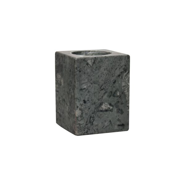 This 5-piece bathroom set is made of round polished Green Marble. Consists of a square soap dish, toothbrush cup, a soap dispenser with metallic dispenser head and cosmetic box with lid. A beautiful set of accessories for your bath as well as making a unique gift choice.Expect differences in texture, color, grains etc., as this product is extracted from a natural source. This is a natural configuration and should not be considered as a defect.