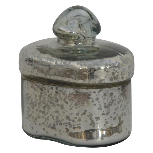 This beautiful little silver glass jar has a decorative metal lid with a battered effect. Its shape reflects the light from different angles and will make a great addition to your antique silver glass collection in any part of the home. It can be used to store little bits and pieces like jewelry, sweets, or coins and will also make a lovely gift for friends and family.