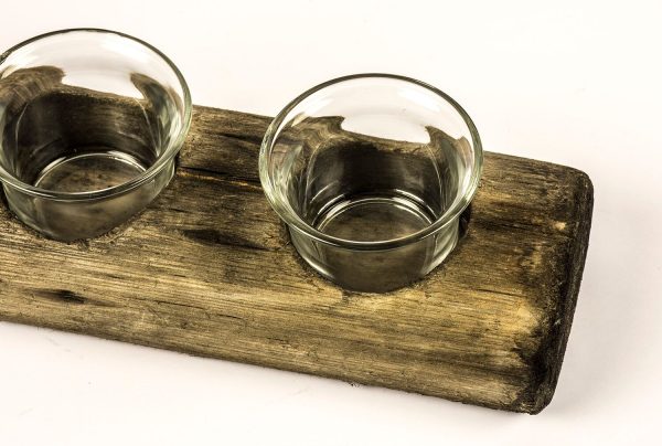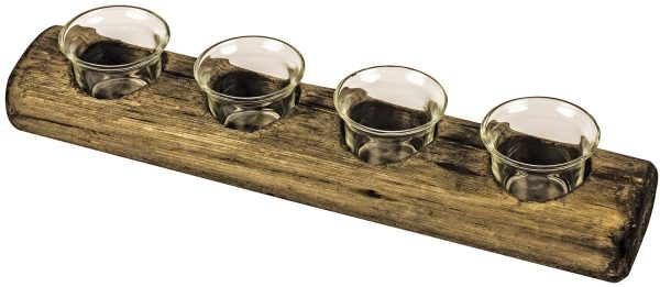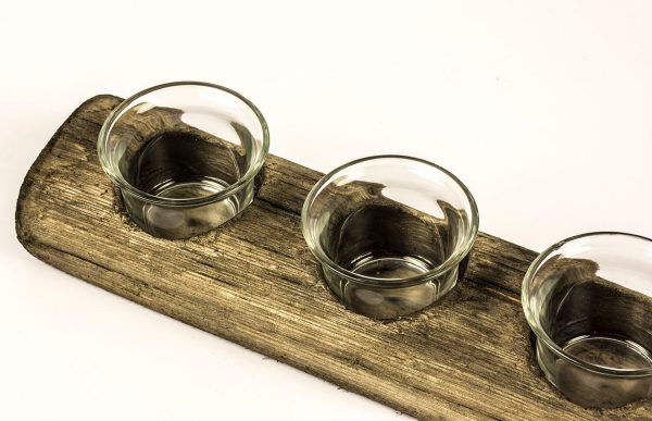 Update your home decor or gift this candle holder to friends or family. This accessory can fit up to 4 T-lights or small candles and features a distressed wooden base and glass cylinders where the candles can be easily and safely placed.