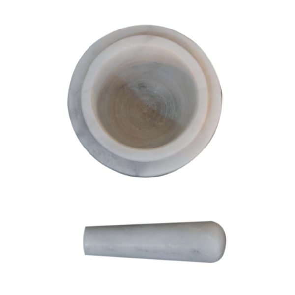 This lovely traditional pestle and mortar provides a high quality way to grind herbs and spices. The beautiful white marble stand is durable and easy to clean for everyday use, while the dark streaks give the stand its traditional look. A beautiful addition to your kitchen. Expect differences in texture, color, grains etc., as this product is extracted from a natural source. This is a natural configuration and should not be considered as a defect.